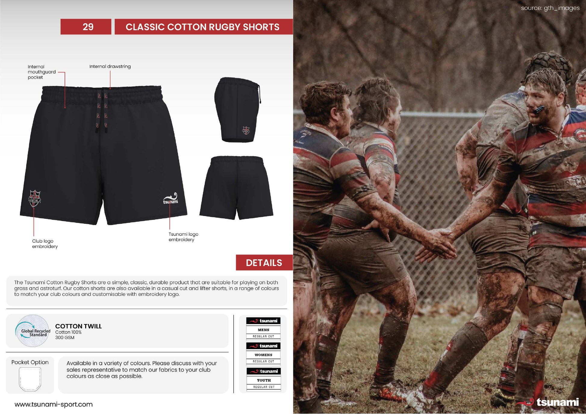 The Classic Cotton Rugby Shorts are simple, classic, durable product that are suitable for playing on both grass and astroturf. Our cotton shorts are also available in a casual cut and lifters shorts, in a range of colors to math your club colors and customisable with embroidery logo.